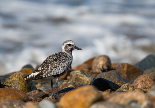 September is the month for shorebird migration, and I visited Gooseberry Neck and Allen's Pond down in Westport to see what were on the beaches. Gooseberry had a number of Semipalmated Sandpipers as well as Sanderling. I also spotted one Least Sandpiper which is the smallest of the shorebirds known as peeps. Black-bellied Plover and Semipalmated Plover were around on the beach and the rocky side, and I also believe I saw a Golden Plover which would be a lifer for me! The Black-bellied is on the left below and the Golden is on the right.